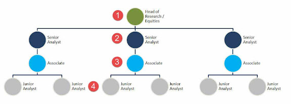 After understanding their role and their clients, it is important to understand the organisation chart with the research division. The most senior person would be the head of research. He is the captain and final approval level before the research reports goes out to public. Then it would be the senior analysts who are usually seasoned and experience analysts who may even be known as "sector specialist". Example : a senior analysts covering banking stocks may be even more experienced than the head of research as a sector specialist probably due to the years of experience covering the sector. This sector specialist research analysts also have good network with the companies in the sector they are covering. Then the lower levels would be associates and junior analysts who are mostly "generalist" where they cover whichever sector or companies allocated to them by the head of research. As a junior in the organisation, they would have to do most of the grunt work and across sectors subject also to availability. Sometimes, fortunate "junior analysts or associates" is given the chance to be "sector specialist" if they show a knack or potential for their particular role. The interesting thing about the research division is that mostly anyone who is qualified, licensed by Securities Commission and approved by the head of research can issue a research report with their name on it. Most research analysts takes pride in their name being printed. Just like an author of a book.